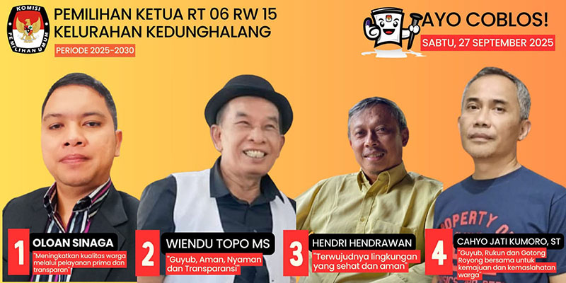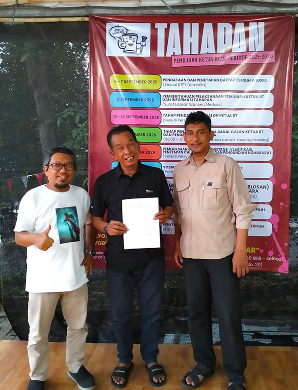 Bogor – Warga RT 006 RW 015 Villa Bogor Indah 3 kini resmi memiliki ketua RT baru setelah pemilihan yang berlangsung secara demokratis, 27 September 2025. Bapak Windu topo salah satu calon, berhasil unggul atas 3 rivalnya (Oloan Sinaga , Hendri Hendrawan Cahyo jati kumoro ) dengan perolehan 43 suara dari total 141 Kepala Keluarga (KK) yang mengikuti pemungutan suara di Fasum RT.006 RW.015
