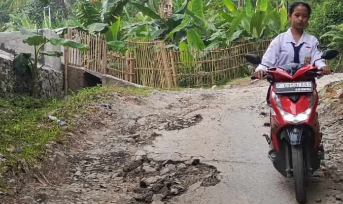 jurnalinspirasi.co.id – Akses jalan yang berstatus kabupaten yang menghubungkan Desa Curugbitung dengan Desa Nanggung, Kabupaten Bogor kondisi rusak parah dan belum juga ada perbaikan.