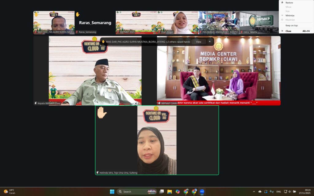 CIAWi – Tantangan perubahan iklim semakin nyata berdampak pada sektor pertanian. Lahan-lahan pertanian yang kerap tergenang banjir mengakibatkan penurunan produktivitas dan mengancam stabilitas pangan nasional. Menyikapi kondisi tersebut, Unit Pelaksana Teknis (UPT) Pelatihan Kementerian Pertanian, Balai Besar Pelatihan Manajemen dan Kepemimpinan Pertanian (BBPMKP) menggelar Bertani On Cloud (BOC) Volume 332, Kamis (27/11/2025) secara virtual.