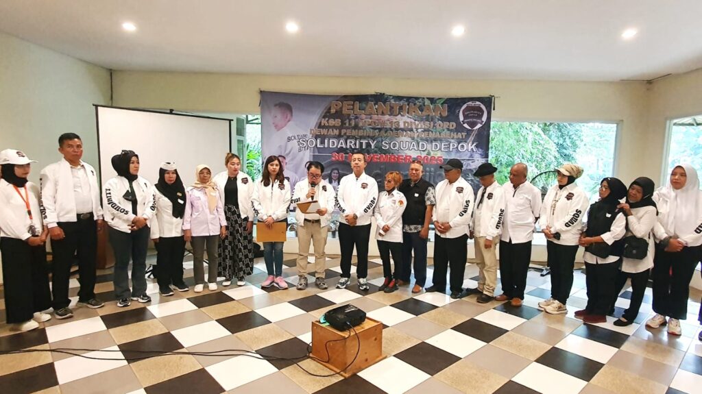 jurnalinspirasi.co.id – Ketua DPD Solidarity Squad Kota Depok Jane Nadeak resmi melantik 13 Divisi DPD dan Ketua, Sekertaris dan Bendahara (KSB) 11 DPC Solidarity Squad di 11 Kecamatan Kota Depok guna menjalankan visi dan misi serta program kerja yang telah dibuat oleh organisasi Solidarity Squad, pelantikan diselenggarakan di White House Godong Ijo Jl. Cinangka Raya No. 60, Serua, Bojongsari Depok pada hari minggu, 30 November 2025.
