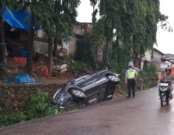 jurnalinspirasi.co.id – Maraknya parkir liar di wayah Kecamatan Cisarua, Kabupaten Bogor khususnya di Kelurahan Cisarua menyebabkan badan jalan menjadi sempit. Hal ini mengakibatkan seringnya terjadi kecelakaan yang dialami kendaraan roda empat. Belum lama ini sebuah mobil Toyota Avanza warna hitam terperosok ke parit di jalan Gapura Kelurahan Cisarua.