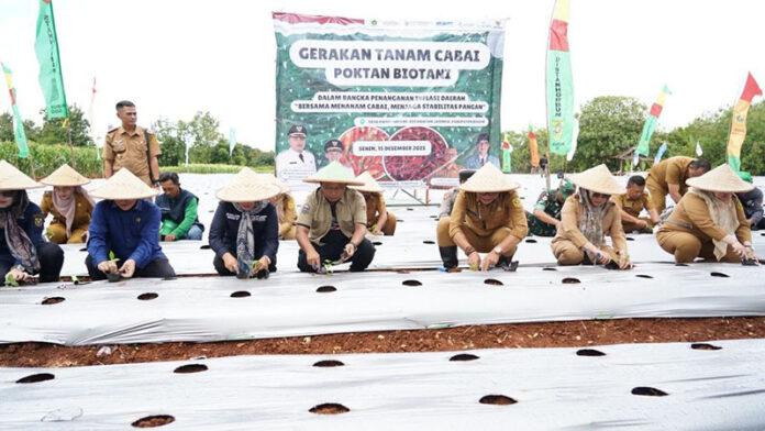 jurnalinspirasi.co.id — Pemerintah Kabupaten Bogor terus memperkuat upaya pengendalian inflasi daerah melalui sektor pertanian. Salah satunya dengan melaksanakan penanaman cabai bersama Kelompok Tani (Poktan) Biotani di Kecamatan Jasinga, Senin (15/12/2025).