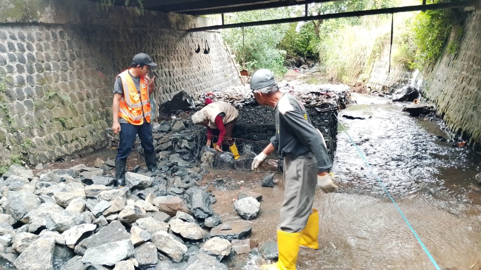Perkuat Struktur Jembatan, DPUPR Bogor Pasang Bronjong di Jembatan Ciburial