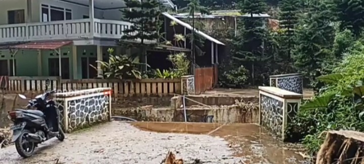 Akibat diterjang banjir pada Jumat (23/1/2026) malam Sabtu (24/1/2026), jembatan Pasir Ipis di Desa Batulayang, Kecamatan Cisarua, Kabupaten Bogor terputus diterjang derasnya air yang mengalir dari wilayah hulu.