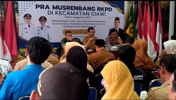 Pemerintah Kecamatan Ciawi menggelar Pra Musyawarah Perencanaan Pembangunan (Pra Musrenbang) Rencana Kerja Pemerintah Daerah (RKPD) Tahun Anggaran 2027 di aula Kecamatan Ciawi, Kabupaten Bogor, Senin (26/1/2026).
