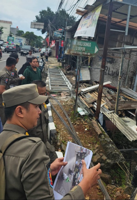 Jajaran Satpol PP dan UPT Penataan Bangunan Kelas A Wilayah Cibinong Dinas Perumahan dan Pemukiman mendatangi bangunan liar (bangli) yang berdiri di atas drainase di ruas Jalan KSR Dadi Kusmayadi dekat lampu merah RSUD Cibinong. Kedatangan itu bertujuan melakukan konfirmasi kelengkapan perizinan bangunan tersebut.