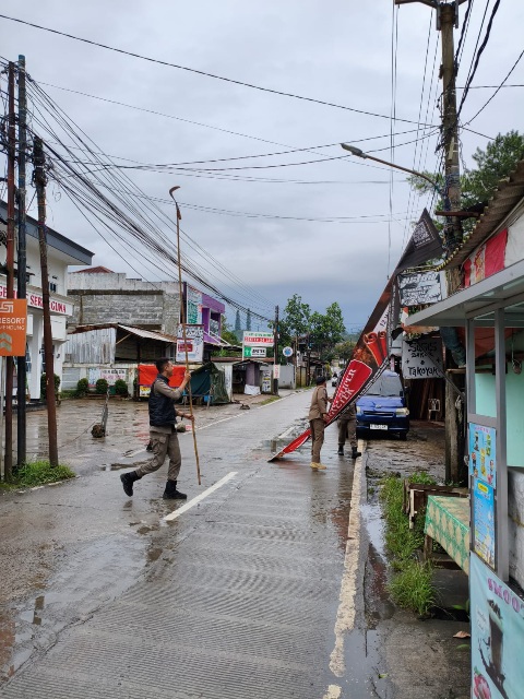 Pemerintahan Kecamatan Megamendung masih menjalankan instruksi Bupati Rudy Susmanto untuk terus melakukan penataan wilayah. Setelah beberapa waktu lalu menertibkan sejumlah bangunan PKL yang dianggap berdiri melanggar aturan, kini anggota trantibnya bergerak melakukan pembersihan spanduk-spanduk yang terpampang di tepi jalan raya Puncak.