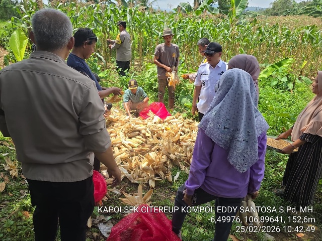 Polsek Citeureup Polres Bogor terus menunjukkan komitmen nyata dalam menyukseskan program ketahanan pangan nasional. Pada Rabu (25/02/2026), Kapolsek Citeureup memimpin langsung aksi panen raya jagung hibrida yang berlokasi di Desa Tarikolot dan Desa Hambalang, Kecamatan Citeureup, Kabupaten Bogor.