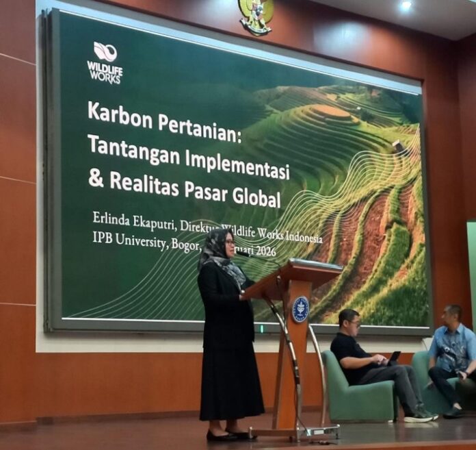 Kegiatan dibuka oleh Puji Mudiana, S.P., M.A., Direktur Pengembangan Karier, Kewirausahaan, dan Hubungan Alumni IPB University, mewakili Rektor IPB University, serta dihadiri oleh Dr. Ir. R.A. Dyah Tjahyandari Suryaningtyas, M.App.Sc., Kepala Departemen Ilmu Tanah dan Sumberdaya Lahan IPB University, yang menegaskan pentingnya fondasi ilmiah dalam pengembangan carbon project pertanian.