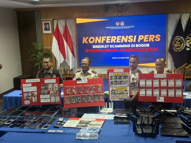 Sebanyak 13 warga negara Jepang ditangkap Kantor Imigrasi Kelas I Non TPI Bogor. Mereka diduga terlibat praktik penipuan daring (online scamming) di kawasan Babakan Madang, Kabupaten Bogor, Senin (2/3) malam.