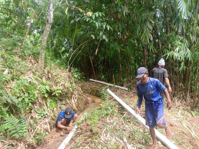 Kerja bakti pemasangan Pipa itu, bentuk kolaborasi antara perusahaan PT Antam dengan perkumpulan petani yang tengah menggarap lahan pertanian bunga sedap malam.