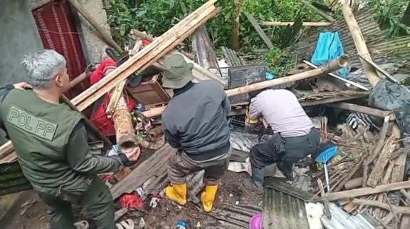 “Tidak lama setelah mendapat laporan, kami dari pihak desa bersama Babinkamtibmas, Babinsa, Satpol PP Kecamatan, serta Linmas langsung ke lokasi untuk membantu evakuasi material yang ambruk,” tegasnya.