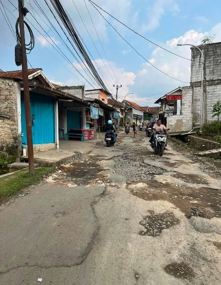 Ruas Jalan Abdul Fatah di Desa Bojong Jengkol, Kecamatan Ciampea, Kabupaten Bogor, mengalami kerusakan parah dan hingga kini belum mendapat perbaikan dari pemerintah daerah.