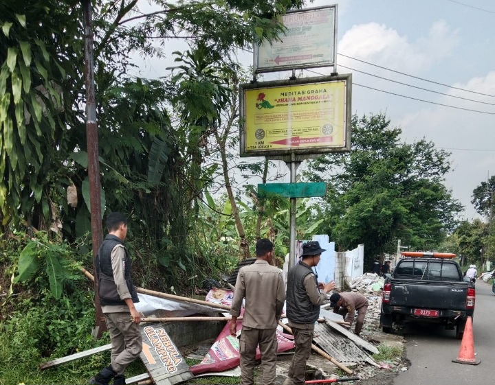 Objek yang sudah ditertibkan di Kecamatan Megamendung, mulai dari pembersihan terhadap kios PKL yang berdiri diatas tanah jalan, hingga kepada reklame yang berdiri melanggar aturan dan membahayakan keselamatan warga sekitar juga para pengendara.